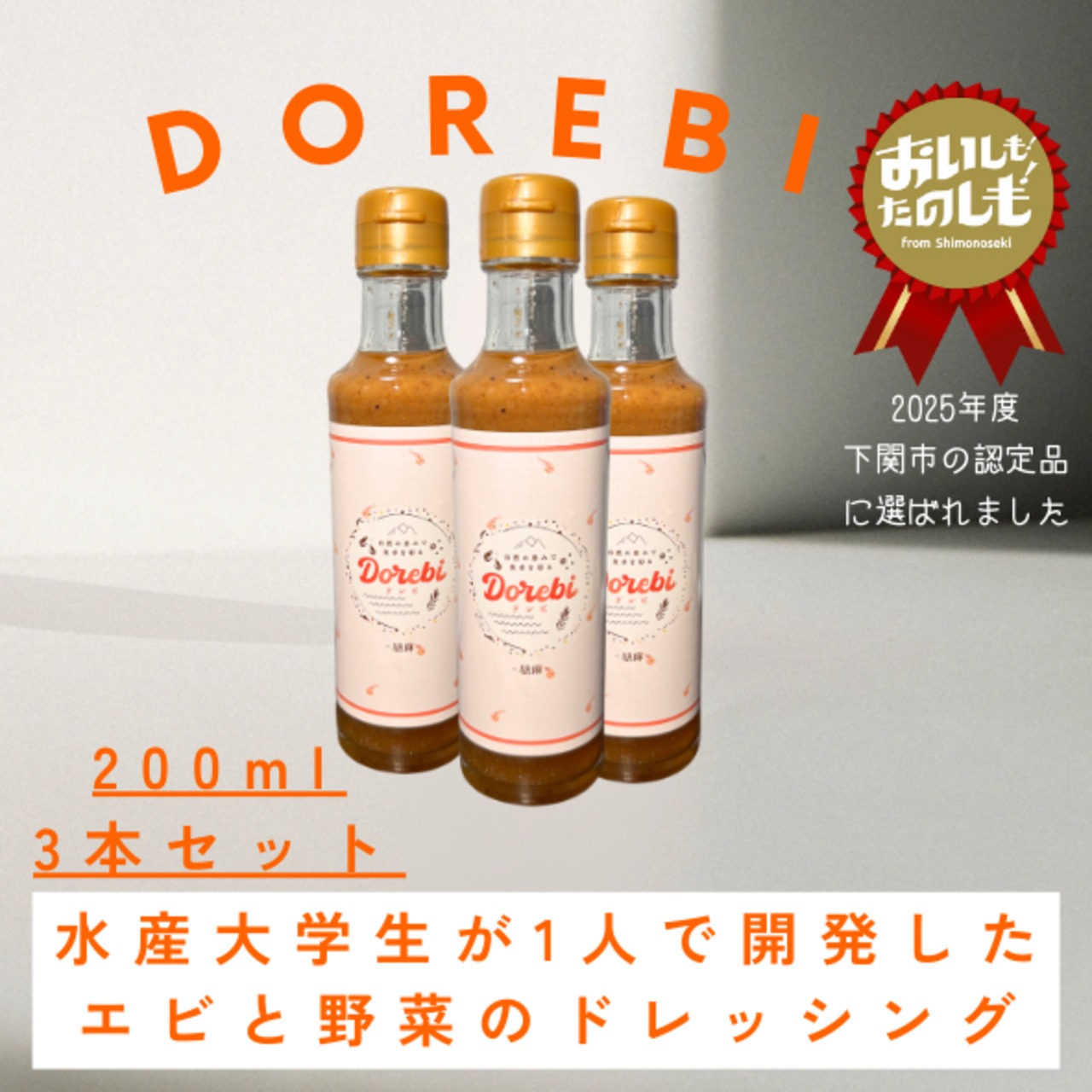 DOREBIは、胡麻の香ばしさとごぼうの深い風味が絶妙に調和した、幅広い世代に愛される濃厚ドレッシングです。特に、東北で採れたツノナシオキアミを丸ごと使用しており、口に広がる独特の旨みが特徴です。